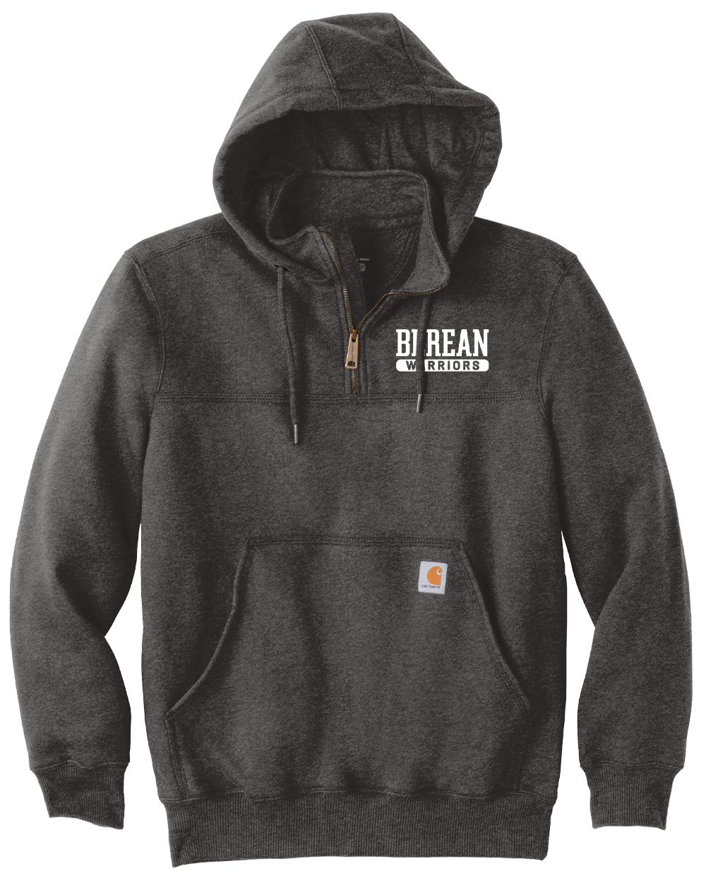 Heavy duty zip hoodies are Carhartt brand in carbon heather. Adult sizes only.