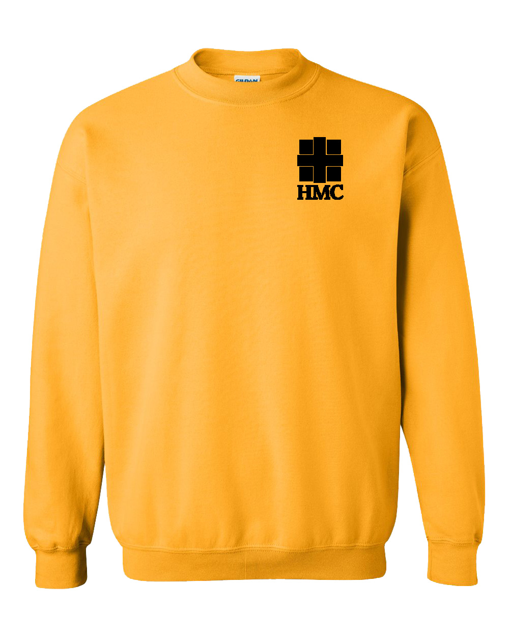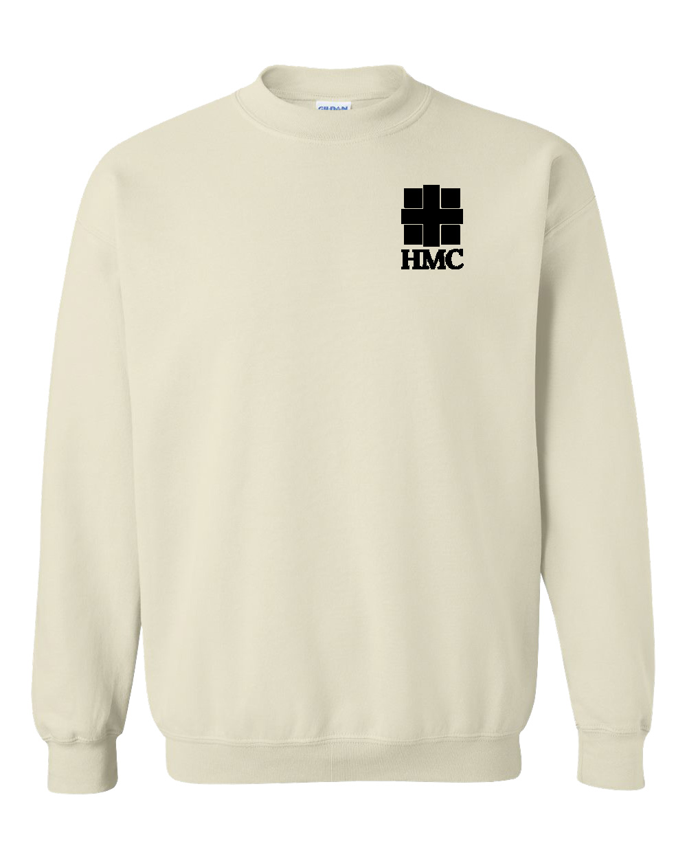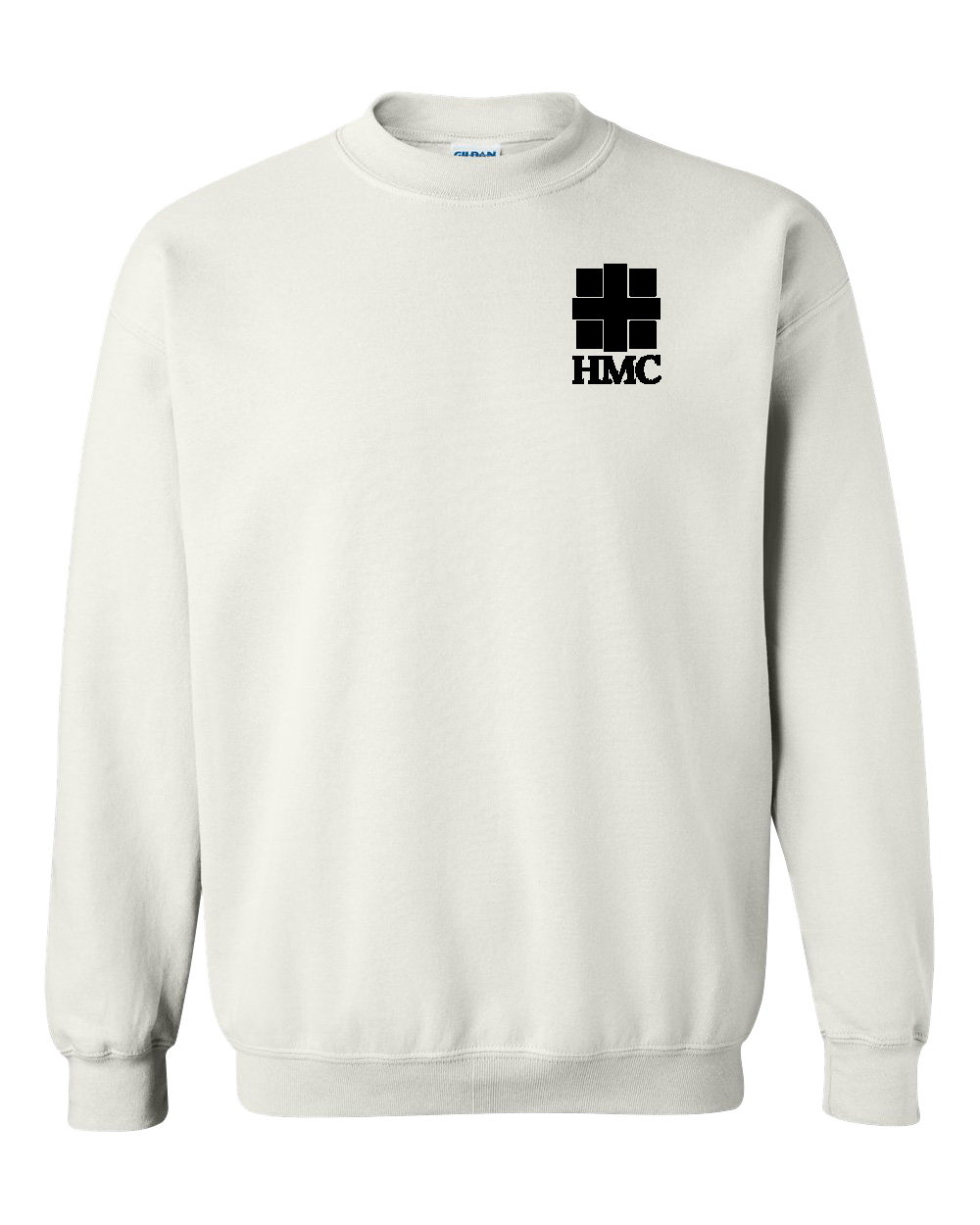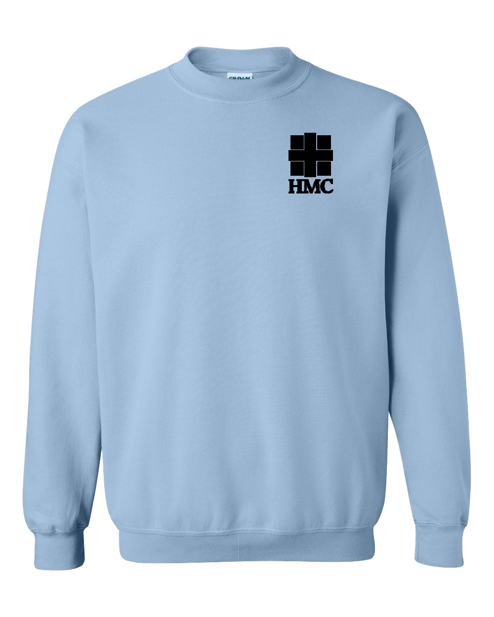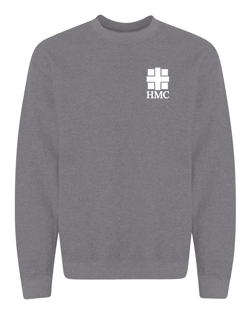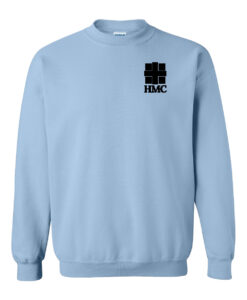 Crewneck fleece come in light pink, light blue, white, ash, gold, graphite heather, sand, and black with a 1-color front HMC imprint.