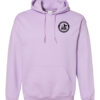 Hoodies are Gildan 50/50 light blue with a black front crest and a full-size back imprint. Adult and youth sizes are available.