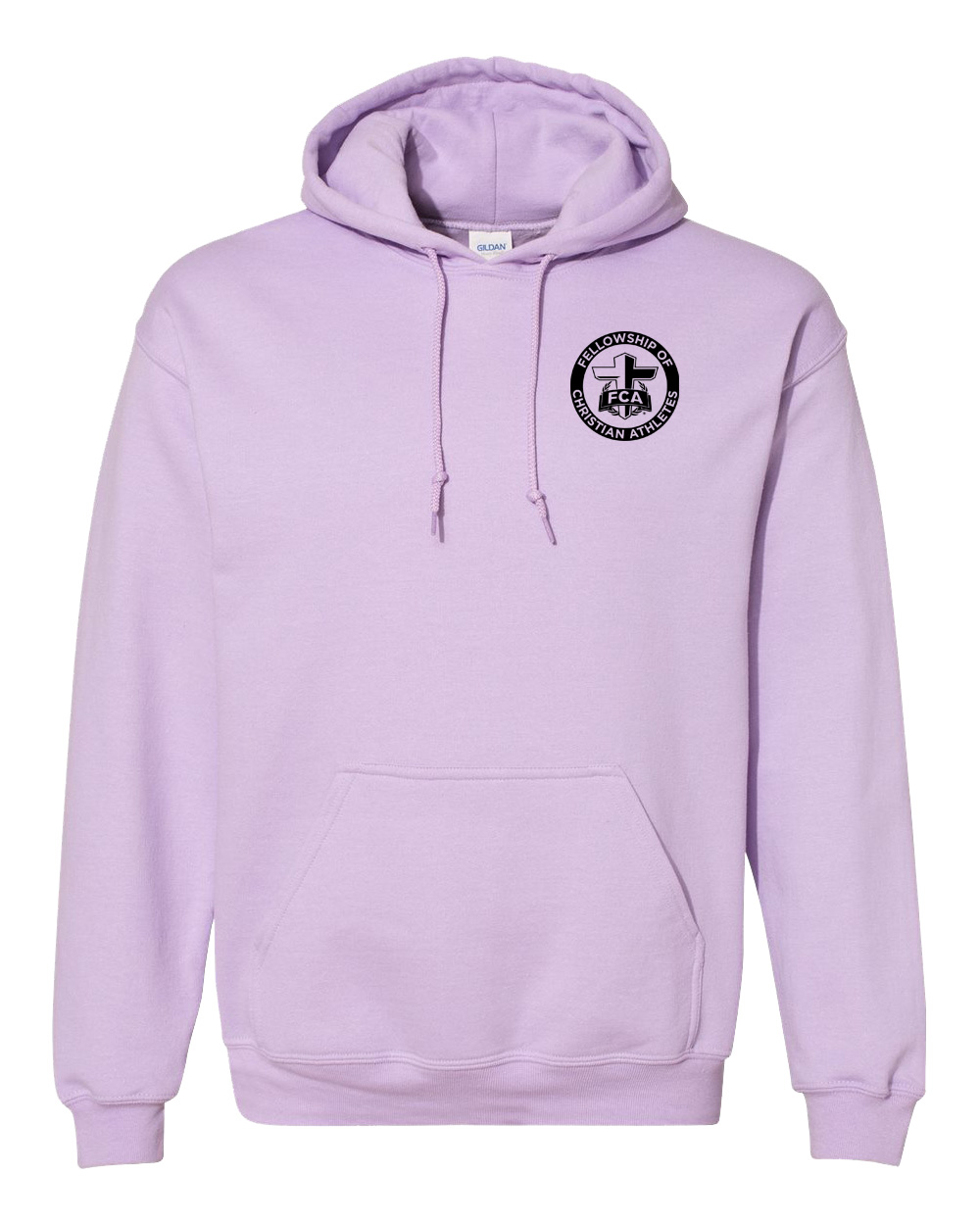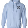 Hoodies are Gildan 50/50 orchid with a black front crest and a full-size back imprint. Adult sizes only.