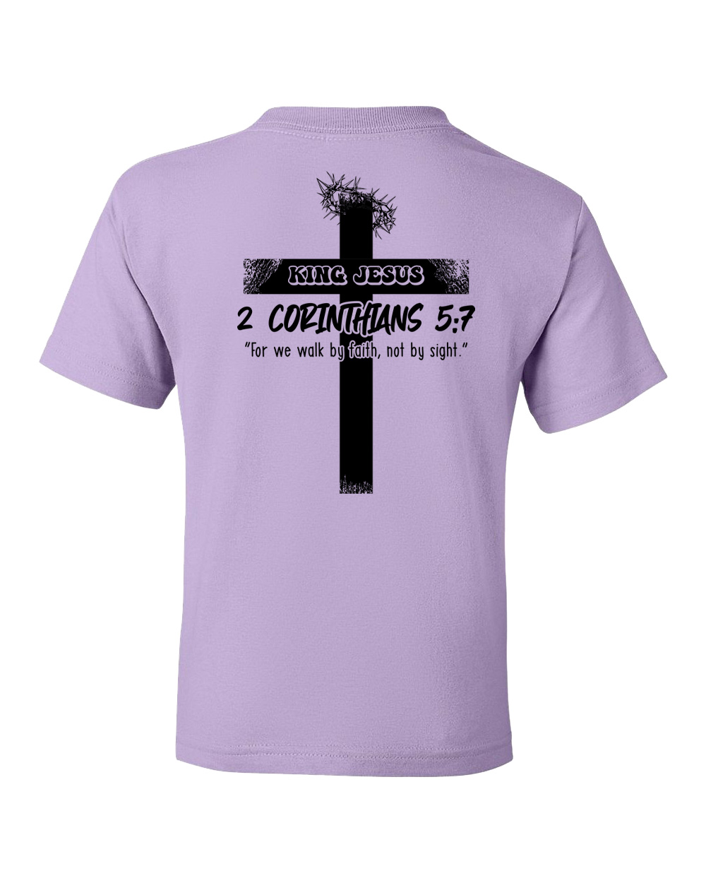 T-shirts are Gildan 50/50 orchid with a black front crest and a full-size back imprint. Adult sizes only.