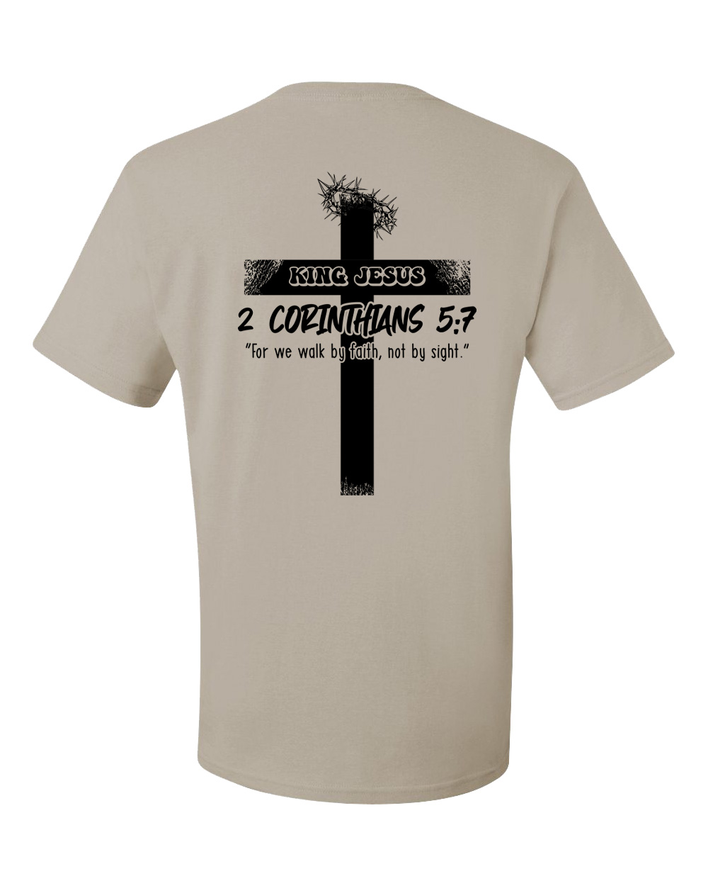 T-shirts are Jerzees 50/50 sand with a black front crest and a full-size back imprint. Adult sizes only.