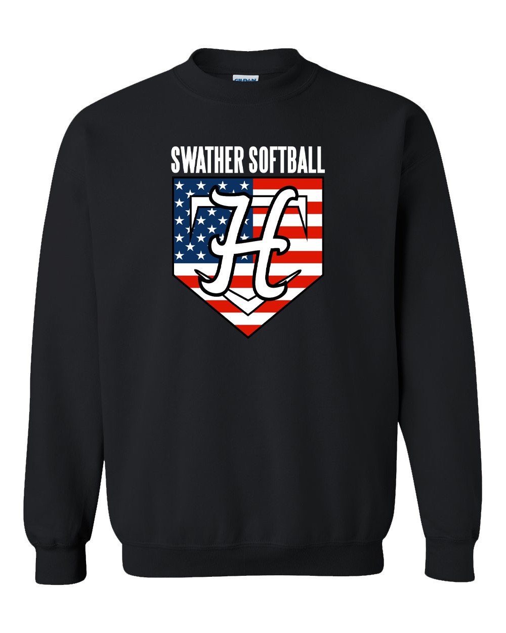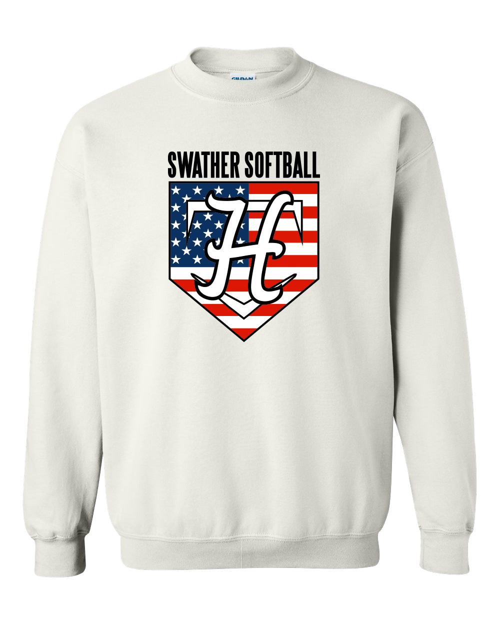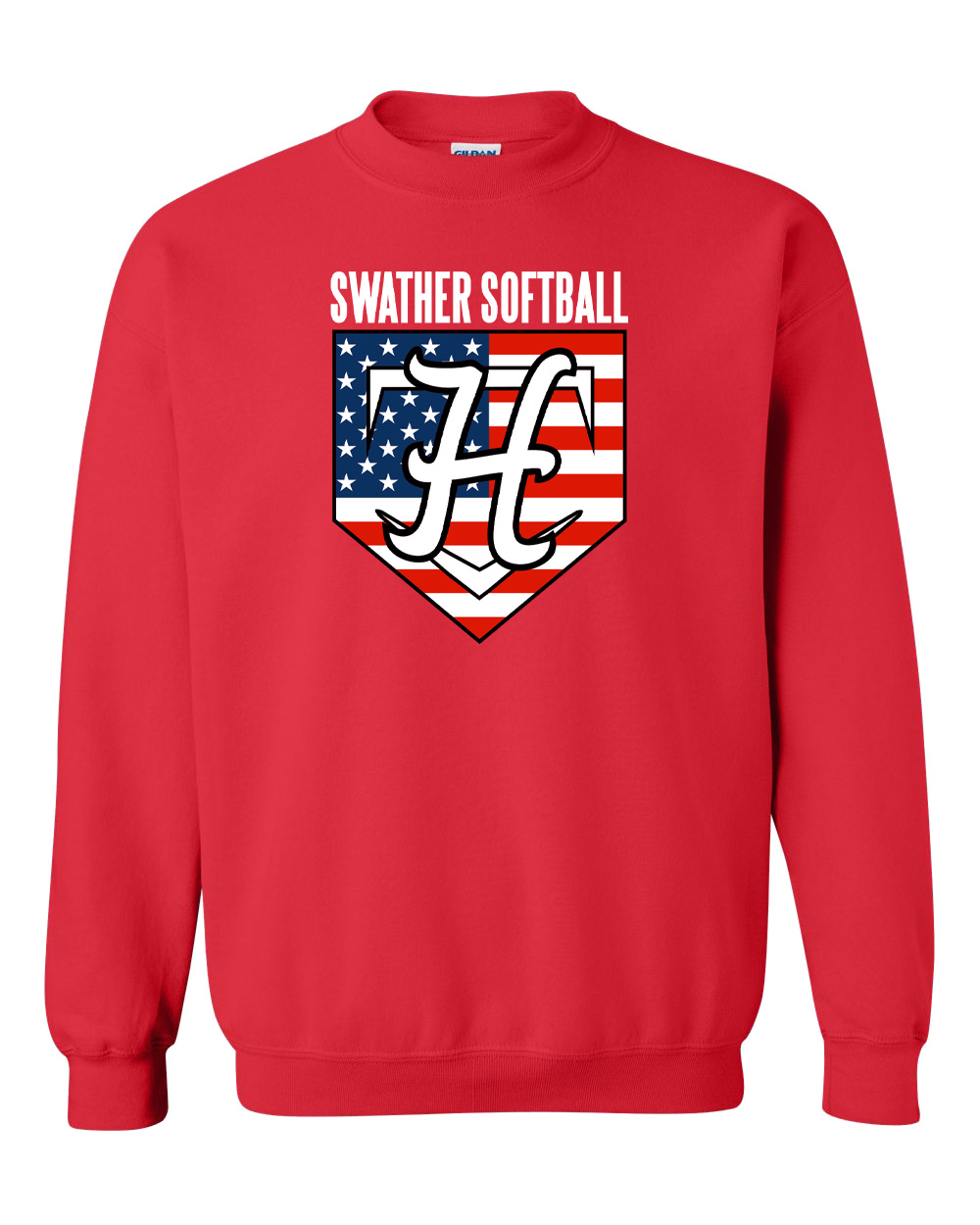 Crewneck fleece are 50/50 in adult and youth sizes. Choice of black, white or red shirt.