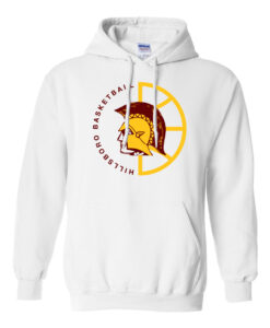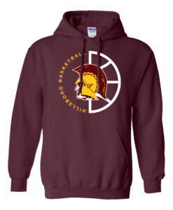 Hoodies are 50/50 in sport gray, maroon, gold, or white with a front imprint.
