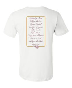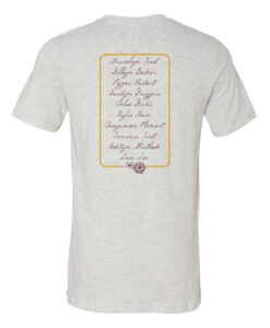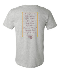Tees are Bella/Canvas with a color option of white, ash, and athletic heather. Option for a team name print on the back of the garment.
