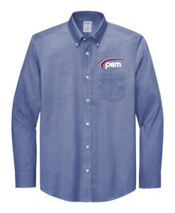 Brooks Brothers wrinkle-free button downs come in cobalt blue and deep black with the a two color PEM logo on the front. (BB18000)