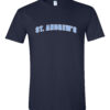 Tees are Gildan 50/50 in navy with a white and columbia blue imprint. Youth tees may be a different brand.