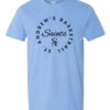 Tees are Gildan 50/50 in gray, navy, black, or columbia blue with a front imprint. Youth tees may be a different brand.