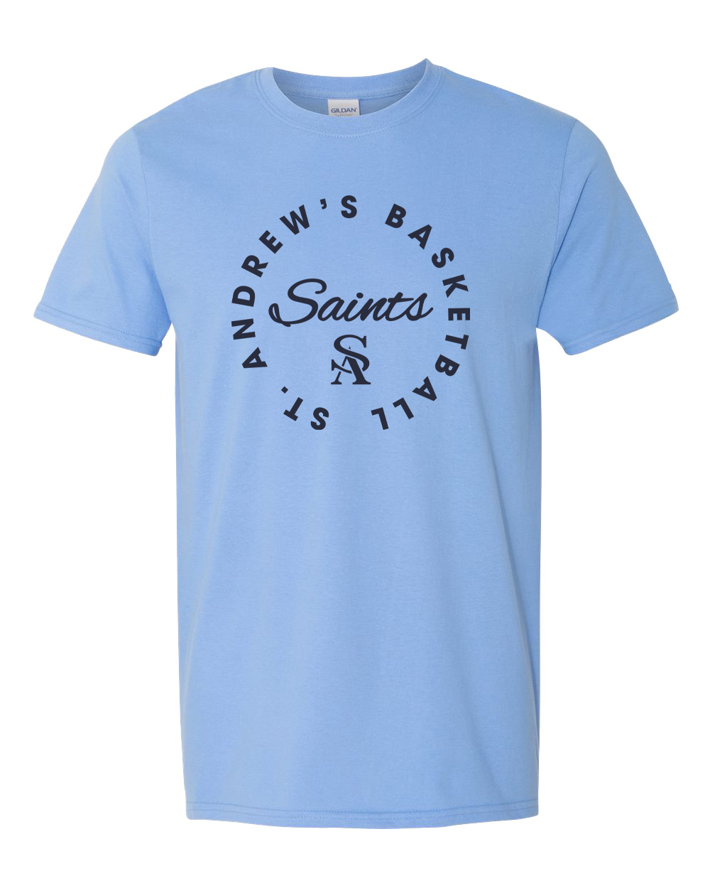 Tees are super-comfortable Gildan soft-style in gray, navy, black, or columbia blue with a front imprint.