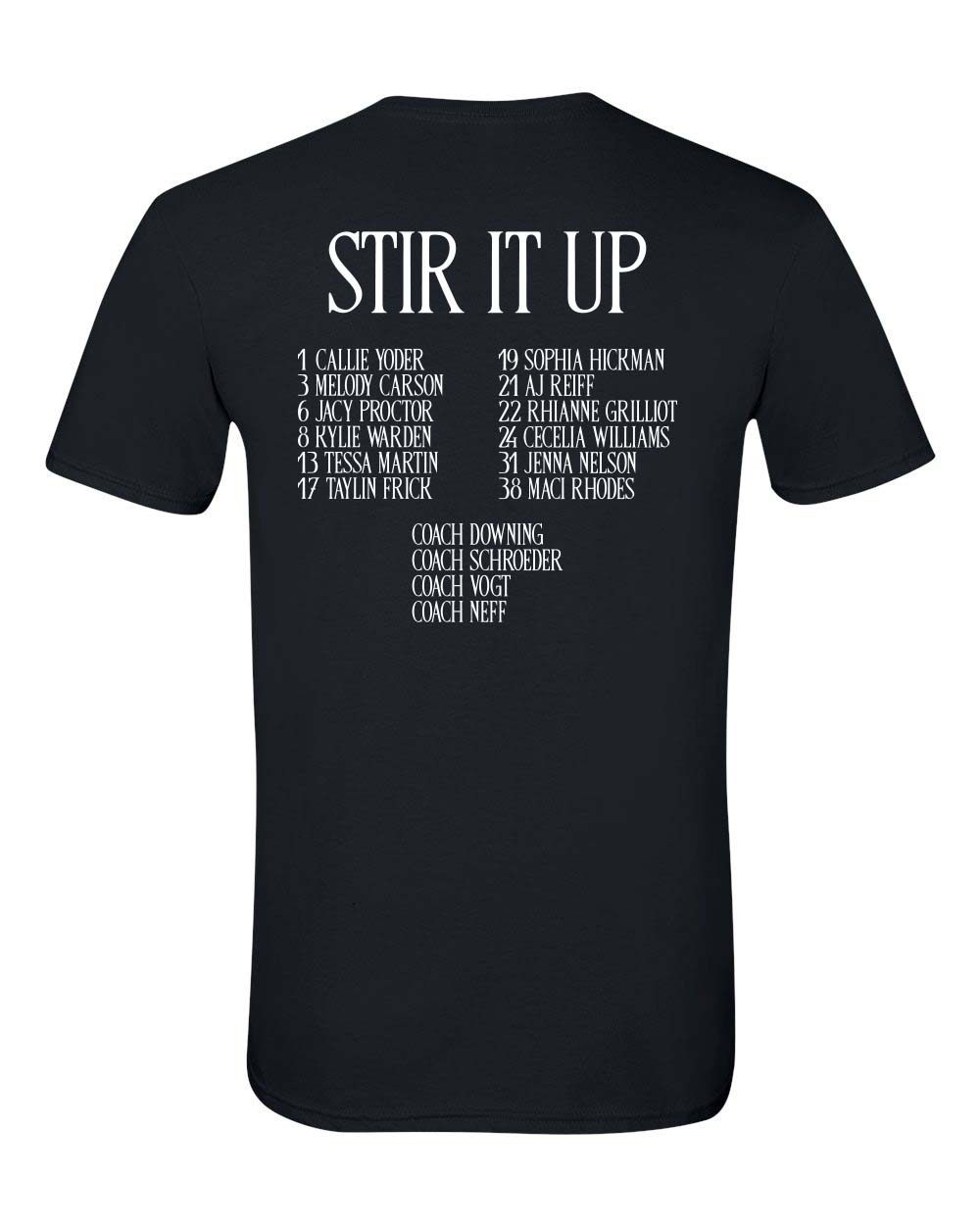 Tees are 100% Cotton Gildan Softstyle in Black with a 2-color front print and 1-color back print. Available in adult and youth sizes.
