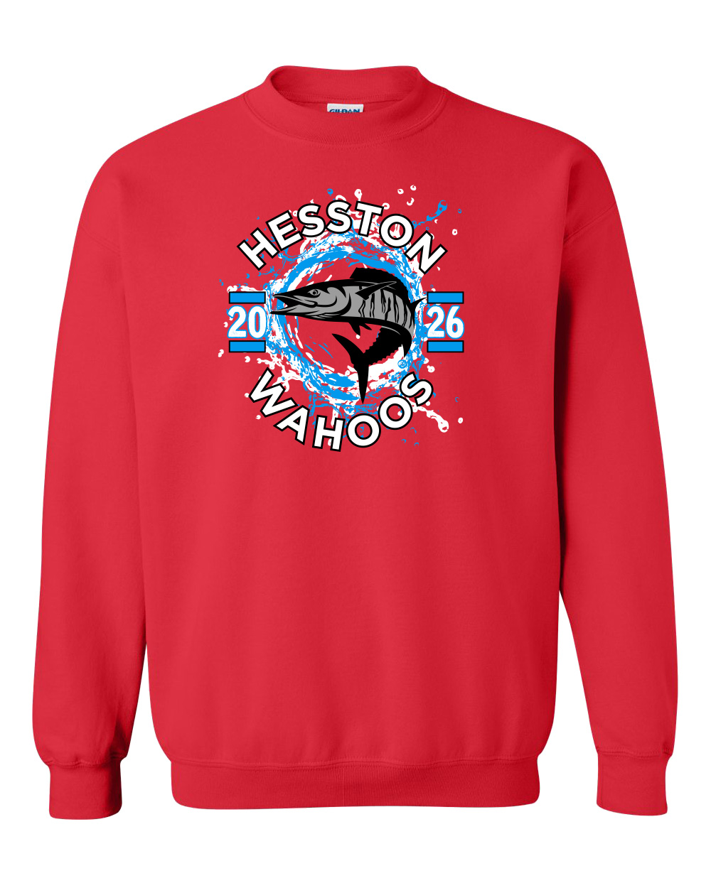 Crewneck sweatshirts are Gildan 50/50 in red (18000). Adult and youth sizes.